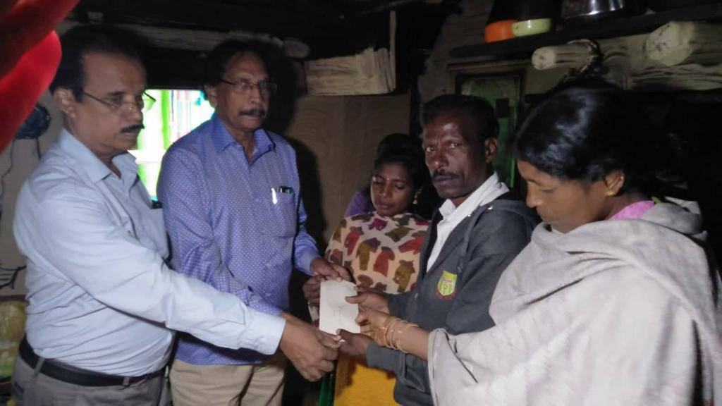 K.U.BAWA Gen Secretary and Exe Committee Member A.K.Rajan Handing over ABHIMANYU FUND BY MCOSA Rs 1,21,000/- to his Father P.B.Manoharan,Mother Poomathi and Sister Kousalya(to be married on 11th Nov) at KOTTAKKAMBUR near VATTAVADA yesterday. MOHAN R former MUNNAR Panchayath Member extended all the help and accompanied our Members.Conveying a word of gratitude to all the members who contributed for this noble venture.